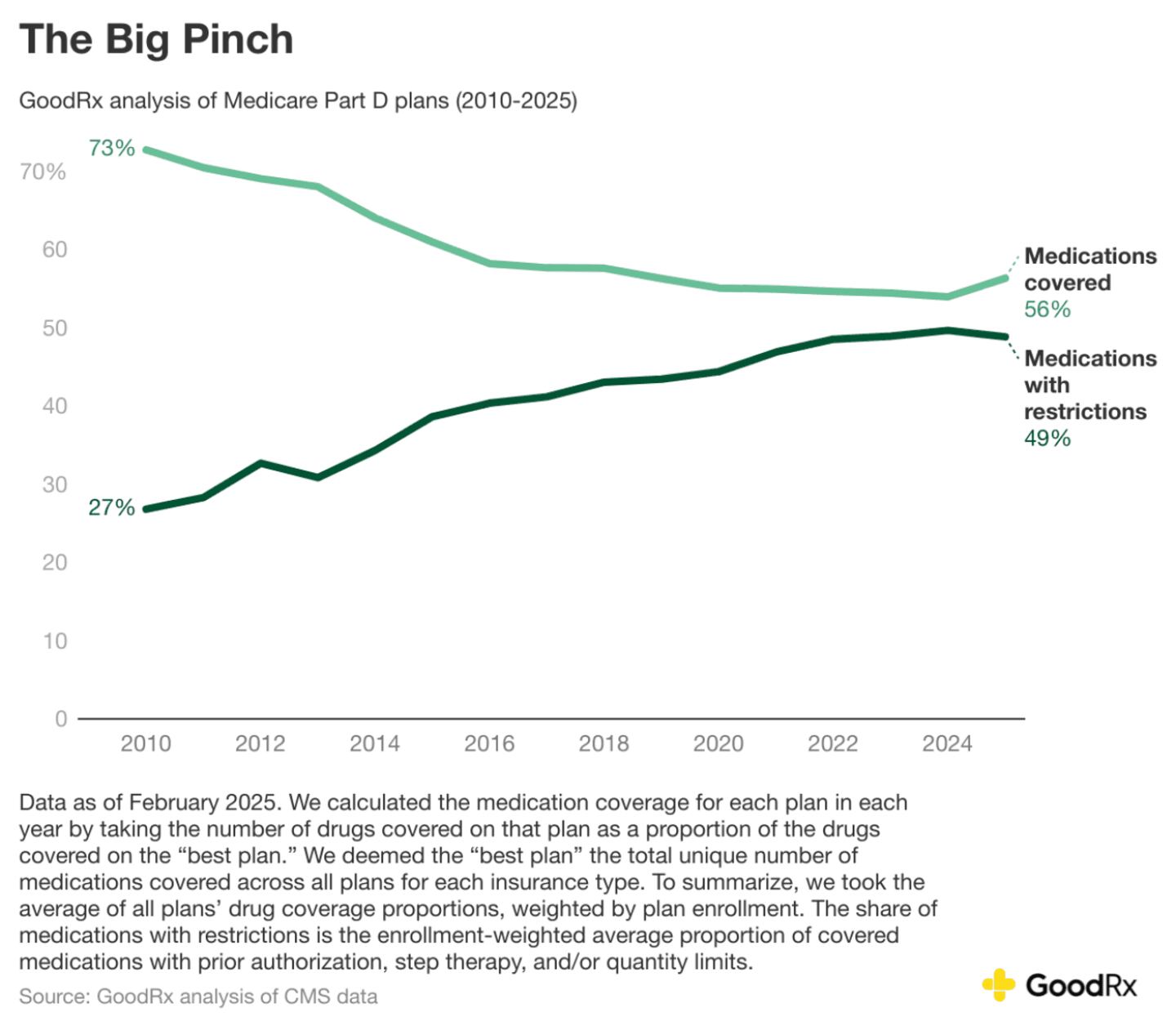 Such restrictions are part of a broader pattern GoodRx Research has identified: Insurance plans are covering fewer medications overall, while placing more conditions on access to those they do cover. That's left many Americans caught in what we've called the Big Pinch—where price is only part of the problem, and the real hurdle becomes navigating increasingly burdensome policies. The pressure is even being felt in Medicare, where federal protections are meant to insulate beneficiaries from the worst of these dynamics.
