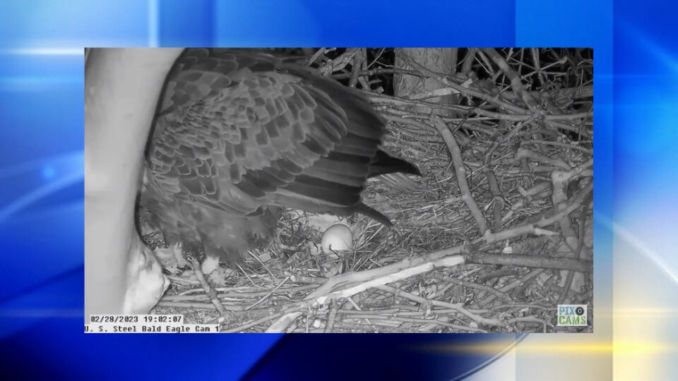PITTSBURGH — The first egg of the year has been laid in the US Steel bald eagle nest.