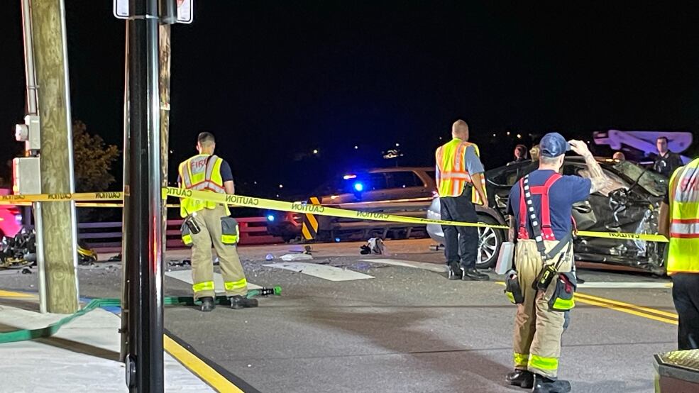 A Channel 11 crew at the scene saw a motorcycle, sedan and an SUV.