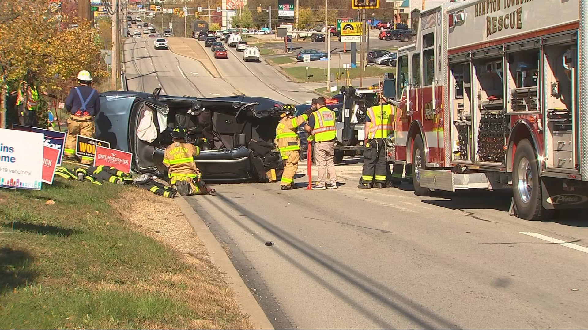 HAMPTON TOWNSHIP, Pa. — Two people were injured in a rollover crash along Route 8 in Hampton Township on Monday.