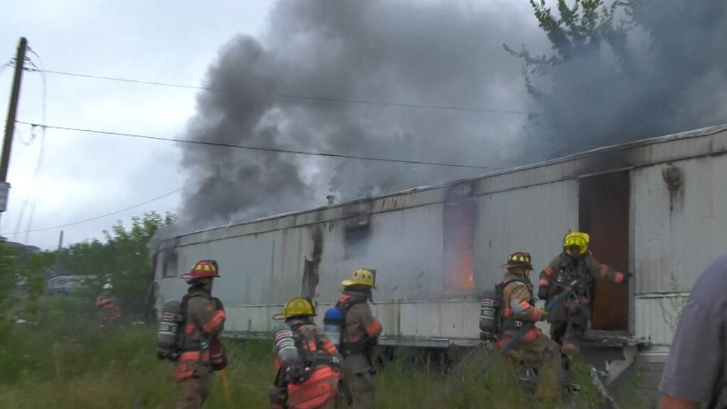 PHOTOS: Crews battle fire at abandoned mobile home in North Huntingdon Township