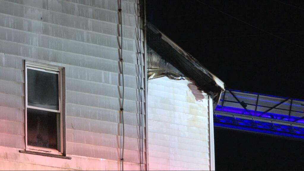 A Channel 11 photographer on scene saw smoke coming from open windows on the second floor and fire damage near the roof.