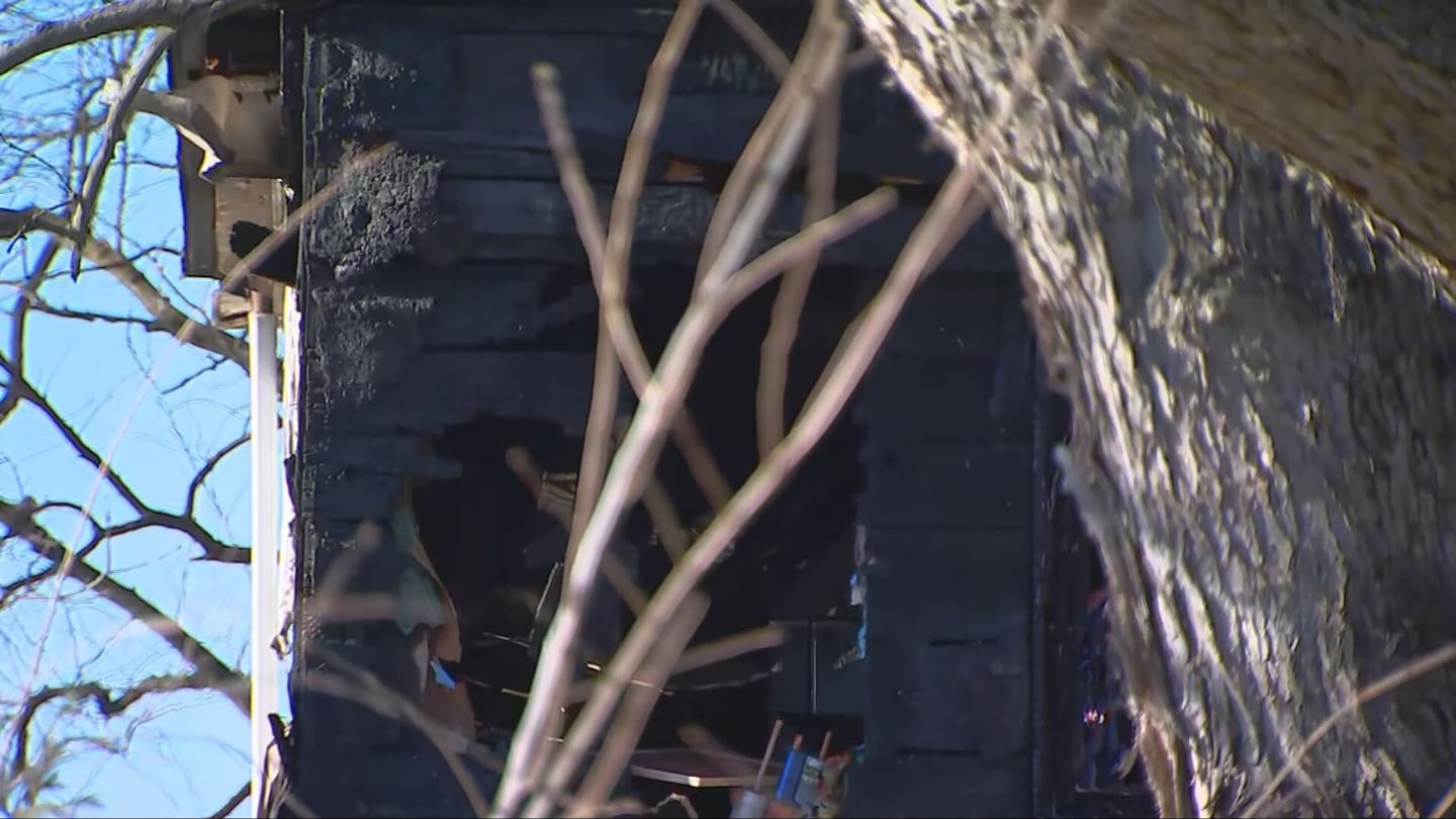 A side of the home had a large hole and was charred after firefighters got the fire under control.