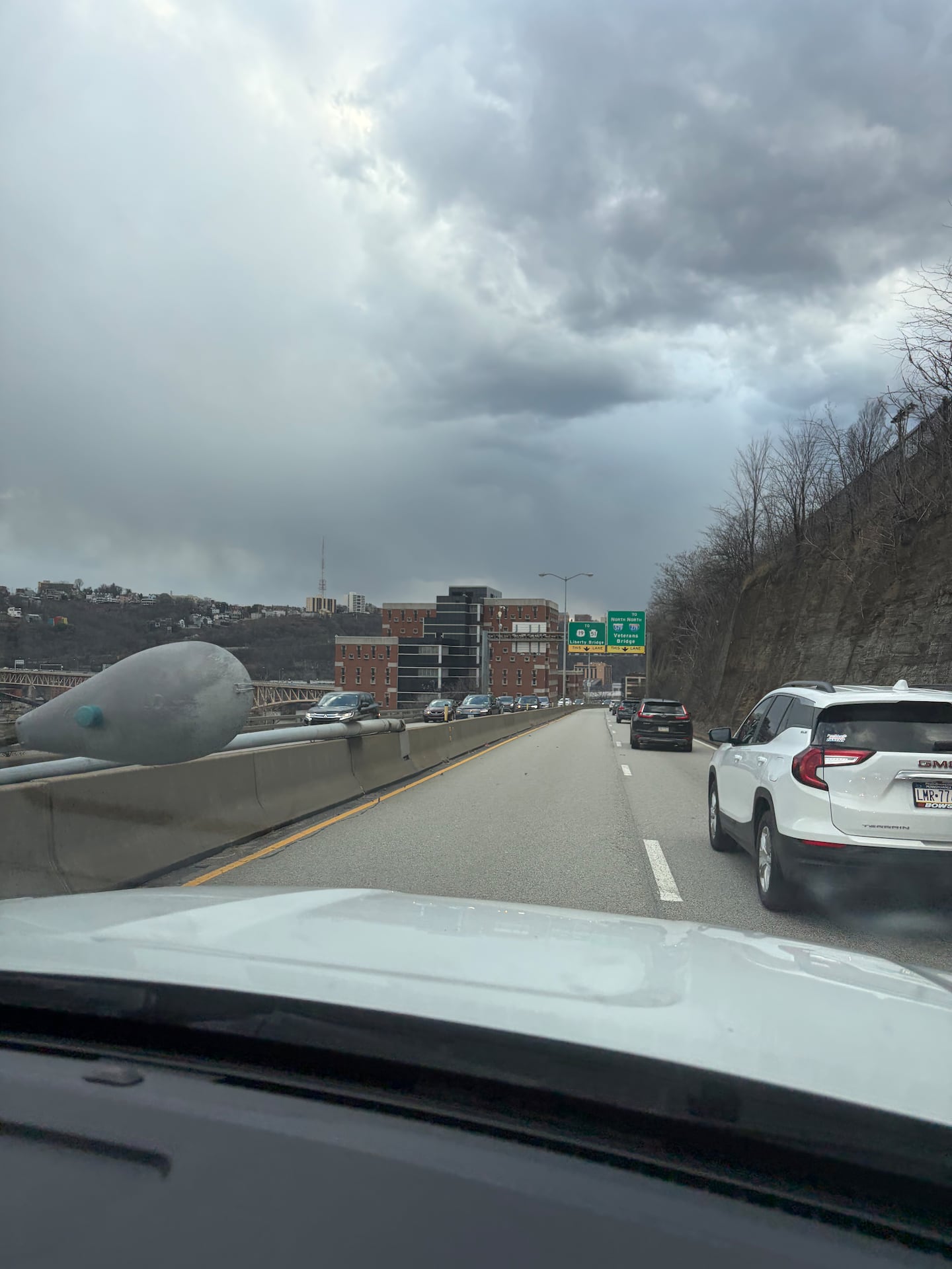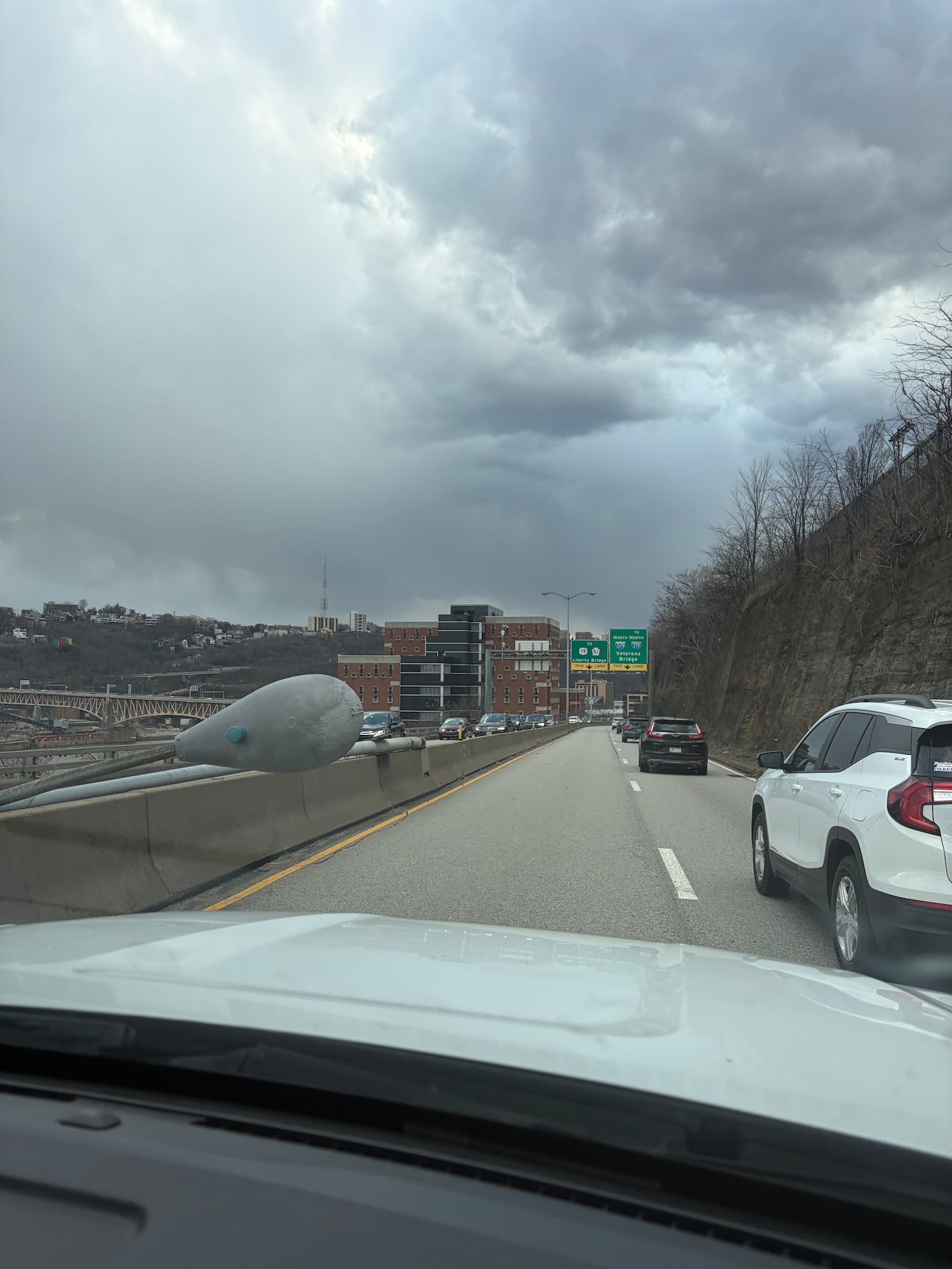A light pole was blown down on the Boulevard of the Allies in Pittsburgh.
