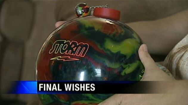 Tony Guarino received his diagnosis four years ago. Now, his love for bowling is part of his dying wish. When the time comes, Tony will use as an urn the ball with which he bowled his only 300 game. The ball was customized so that his wife can place his ashes inside.