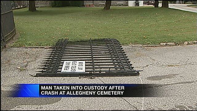 LAWRENCEVILLE, Pa. — Police said they took a man into custody after he damaged an iron gate at Allegheny Cemetery.