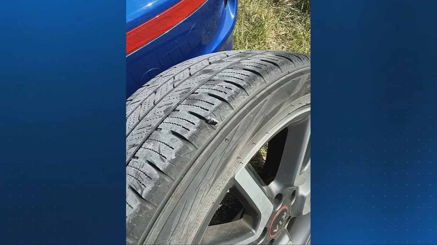 Clark said she is grateful she spotted the metal shard and immediately went to get her tire patched. But she, along with plenty of others, wants to know where this metal came from.