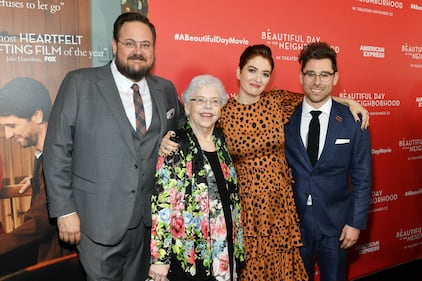 Joanne Rogers NEW YORK, NEW YORK - NOVEMBER 17: (L-R) Noah Harpster, Joanne Rogers, Marielle Heller and Micah Fitzerman-Blue attend "A Beautiful Day In The Neighborhood" New York Screening at Henry R. Luce Auditorium at Brookfield Place on November 17, 2019 in New York City. (Photo by Mike Coppola/Getty Images) (MIKE COPPOLA/Getty Images)