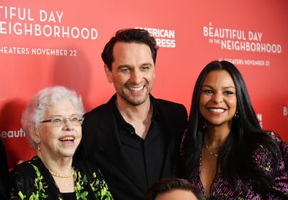Joanne Rogers NEW YORK, NEW YORK - NOVEMBER 17: Joanne Rogers (L) and Matthew Rhys (C) attend "A Beautiful Day In The Neighborhood" New York Screening at Henry R. Luce Auditorium at Brookfield Place on November 17, 2019 in New York City. (Photo by Mike Coppola/Getty Images) (MIKE COPPOLA/Getty Images)
