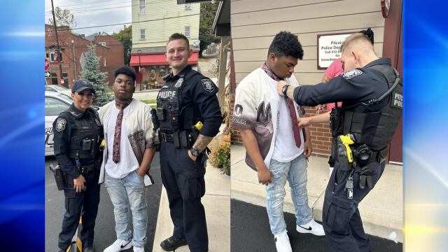 PITCAIRN, Pa. — Two Pitcairn police officers helped a local teenager tie his necktie for his first school dance over the weekend.