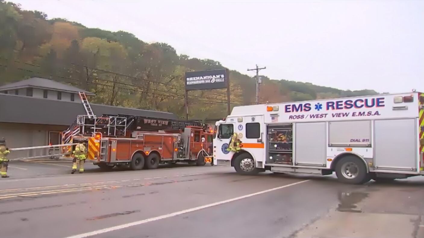 ROSS TOWNSHIP, Pa. — A busy Ross Township road was temporarily shut down early Saturday afternoon while first responders were tackling a fire at a local business.