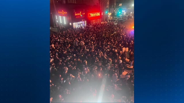 The crowd moved down Forbes Avenue to Bigelow Boulevard at 10:41 p.m. In response, police closed Bigelow Blvd was closed between Forbes Avenue and Fifth Avenue.