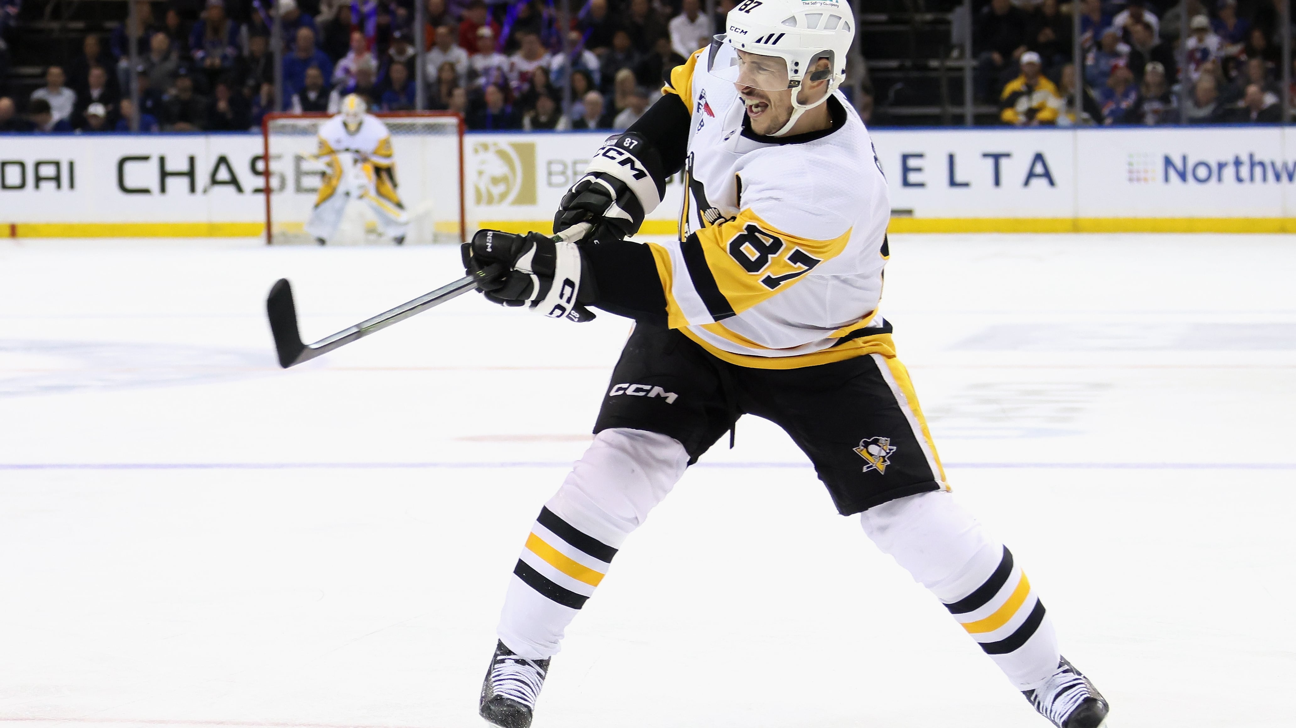 Crosby, 36, scored three points in a resounding 5-2 win over the New York Rangers at Madison Square Garden Monday. The empty net goal was his 82nd point, guaranteeing a point per game this season.