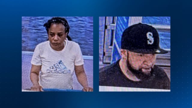 Police are looking for a man with dark hair and a beard, he was wearing a dark shirt and a ballcap with the letter S on the front. The woman with him was wearing a white T-shirt with an Adidas logo on the front.