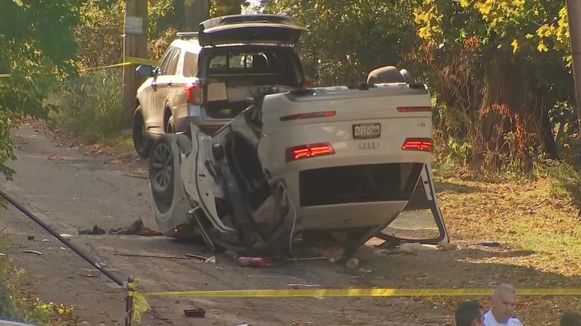 PITTSBURGH — A suspect’s car hit a pole, flipped over and caught on fire after he fled the scene of a ShotSpotter alert in Crafton Heights on Wednesday, Pittsburgh police say.