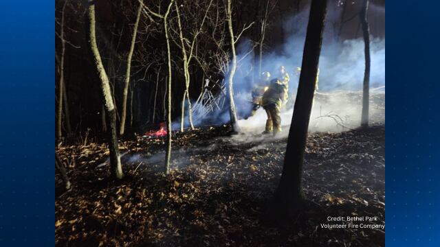 The Bethel Park Volunteer Fire Company says crews were called to a wooded area between Boxer Drive and Dalmation Drive for several suspicious fires.