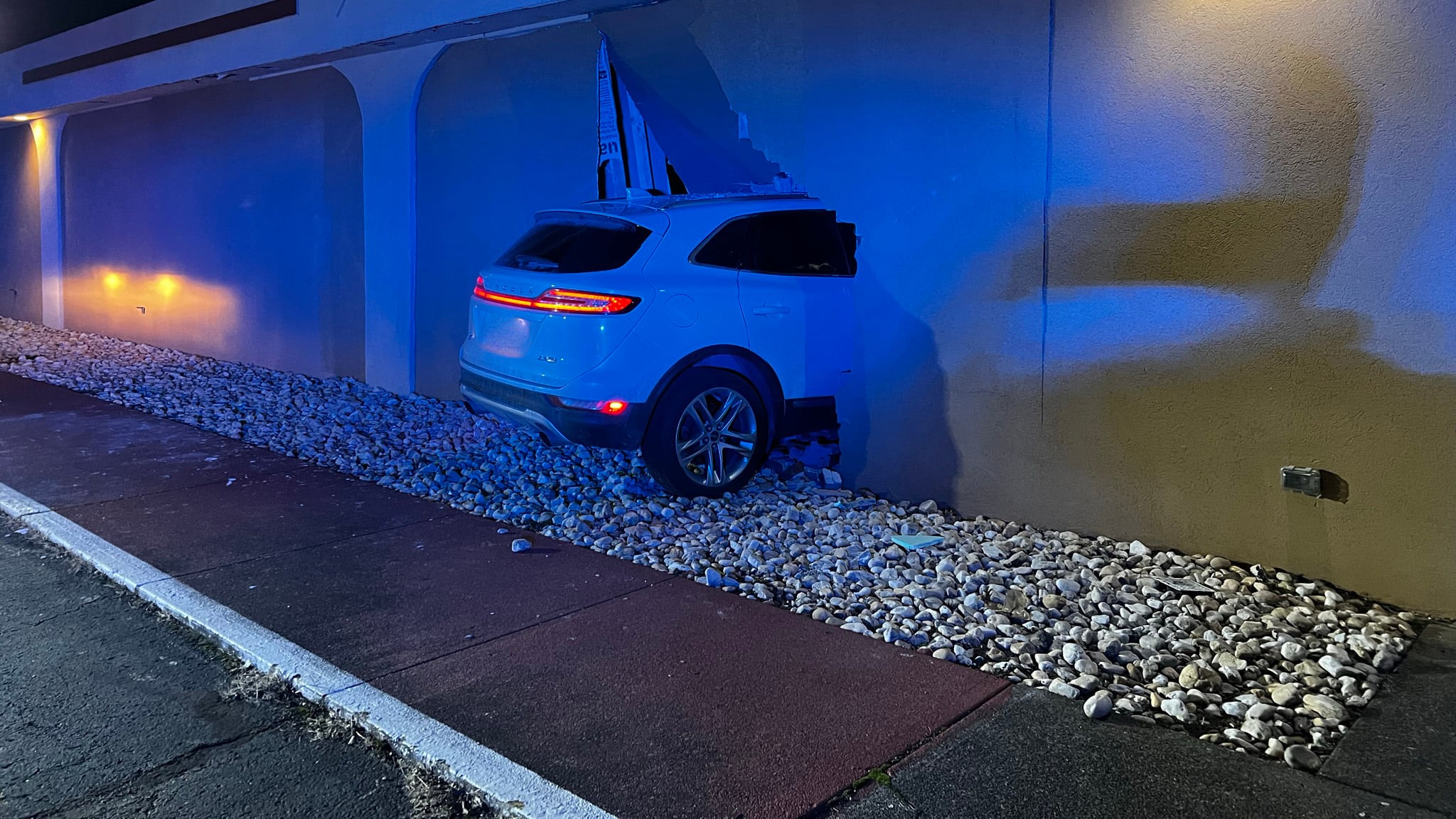 When crews arrived they found an SUV sticking halfway out of one of the hotel walls.