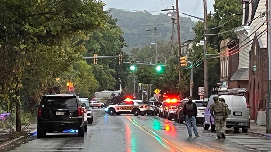 Pittsburgh Police say they believed two people had barricaded themselves in a house after the robbery.