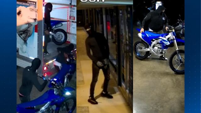 The thieves stole six Yamaha YZ motorcycles. The shop says they arrived in a U-Haul box truck with the license plate and numbers covered.