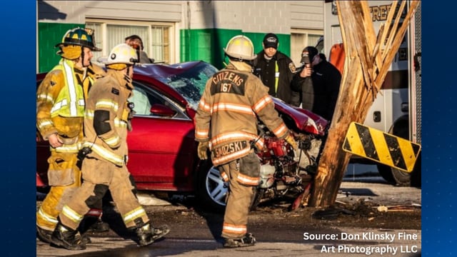 First responders also rescued someone from a second vehicle that had hit a telephone pole outside the station. Medics took one person to the hospital from the scene.