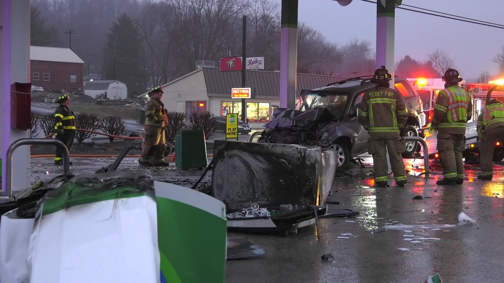 PERRYOPOLIS, Pa. — Multiple people were injured after a vehicle crashed into a gas pump in Perryopolis.