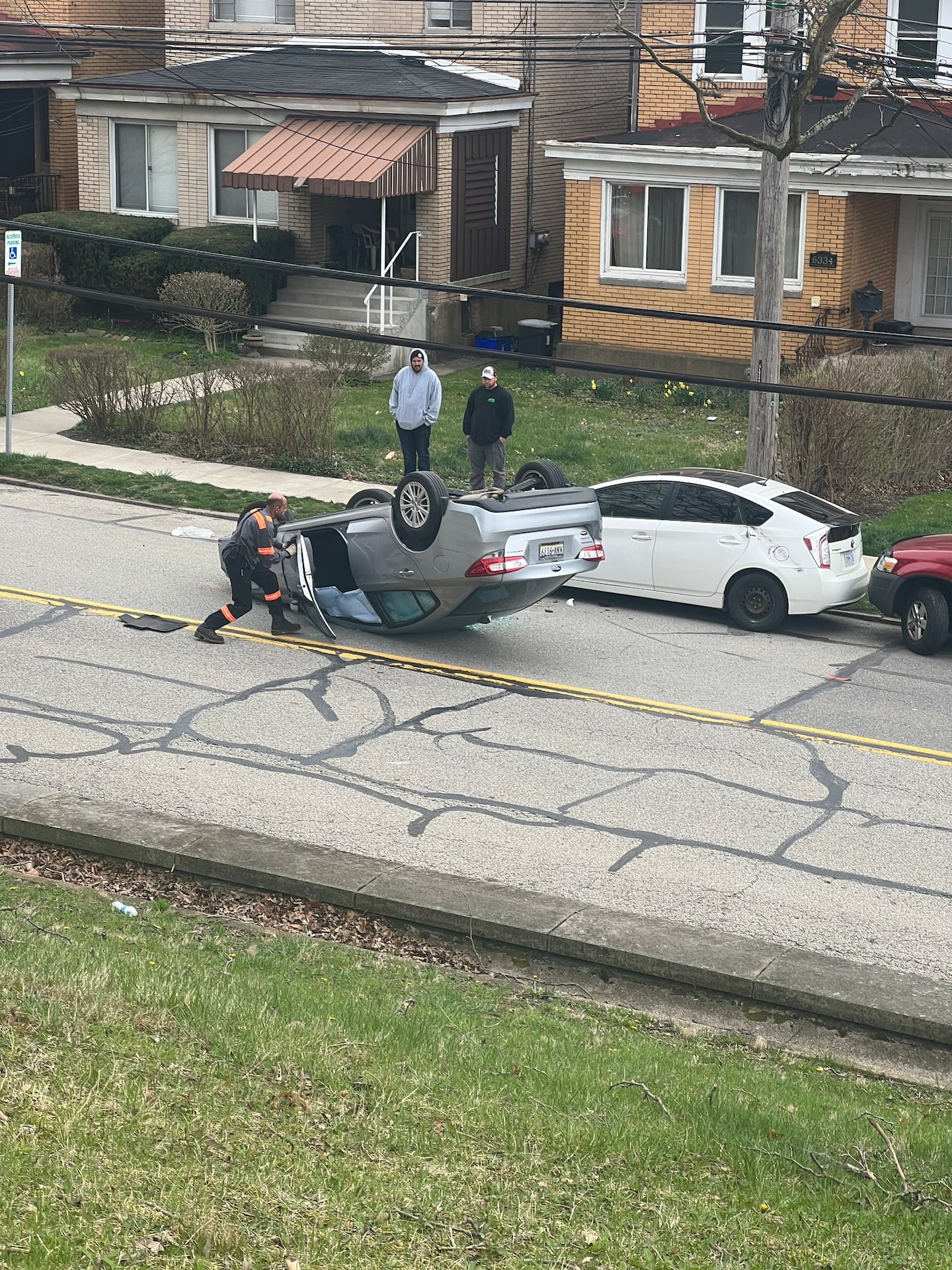 PITTSBURGH — One person was taken to a hospital after a car rolled onto its roof in Squirrel Hill.