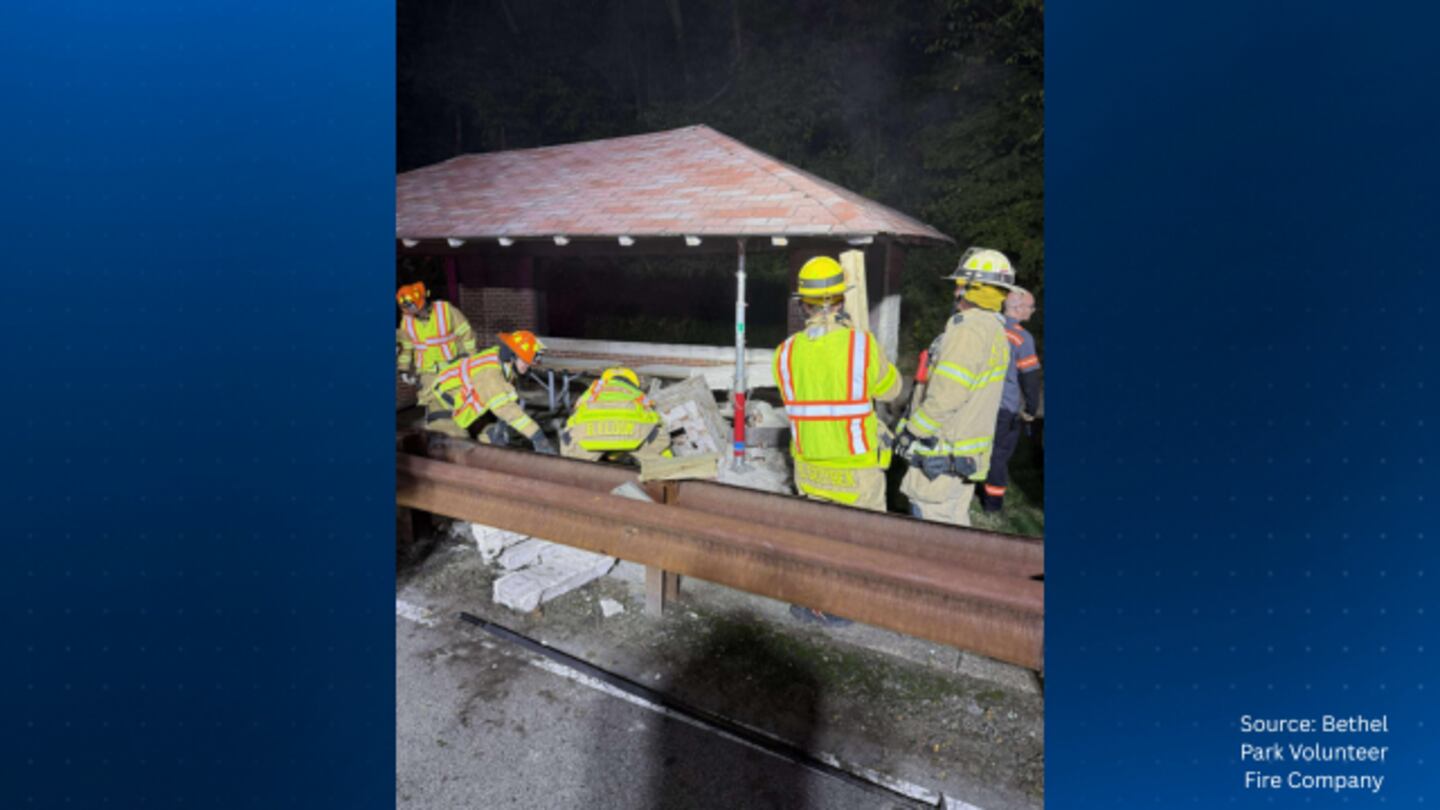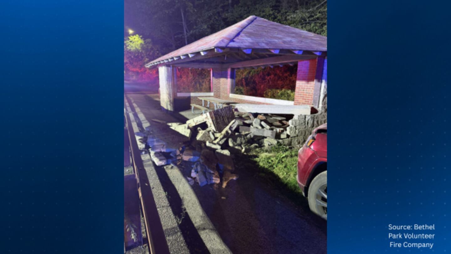 BETHEL PARK, Pa. — A person was taken to a hospital after a vehicle smashed into a gazebo in Bethel Park.