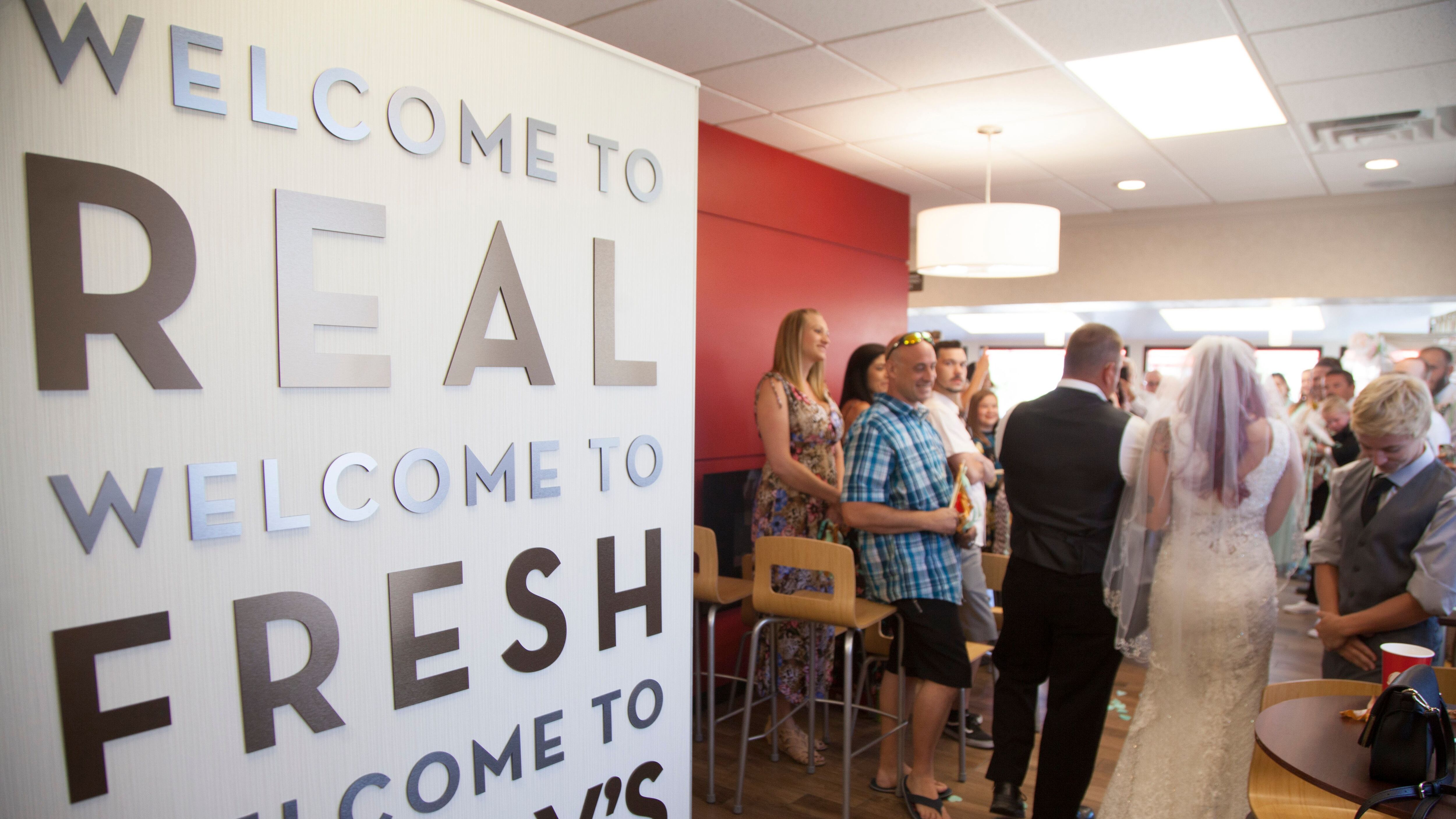 With that, along with the help of Wilber's co-host Emyle Clark, they began making plans and working with the couple around the clock to do something none of them had ever done before: Plan a wedding inside a fast-food restaurant.