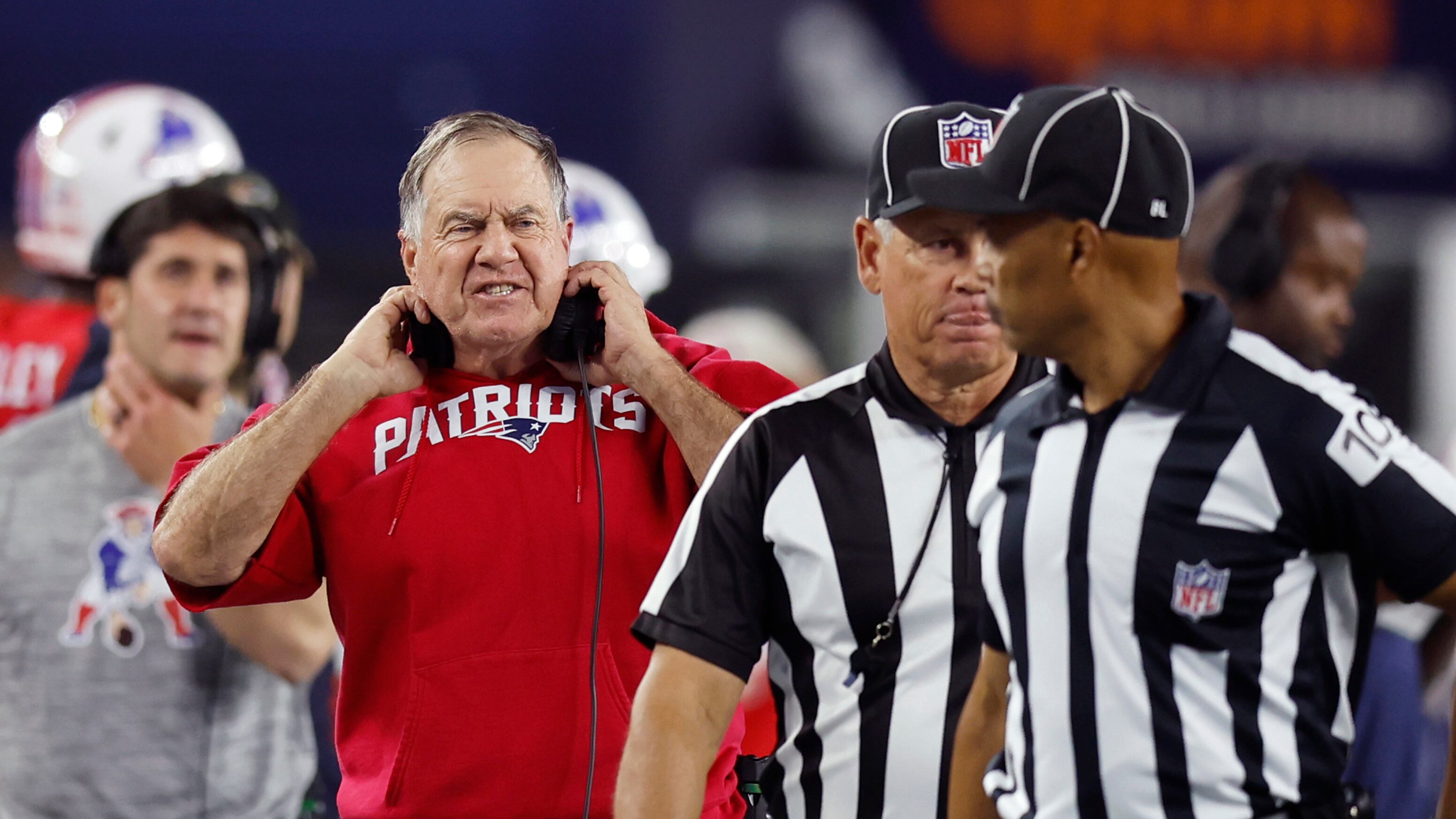 The New England Patriots head coach was displeased with a spot on a third down run against the Miami Dolphins on Sunday. Then a referee forced him to move. Belichick let his feelings be known with his red challenge flag.