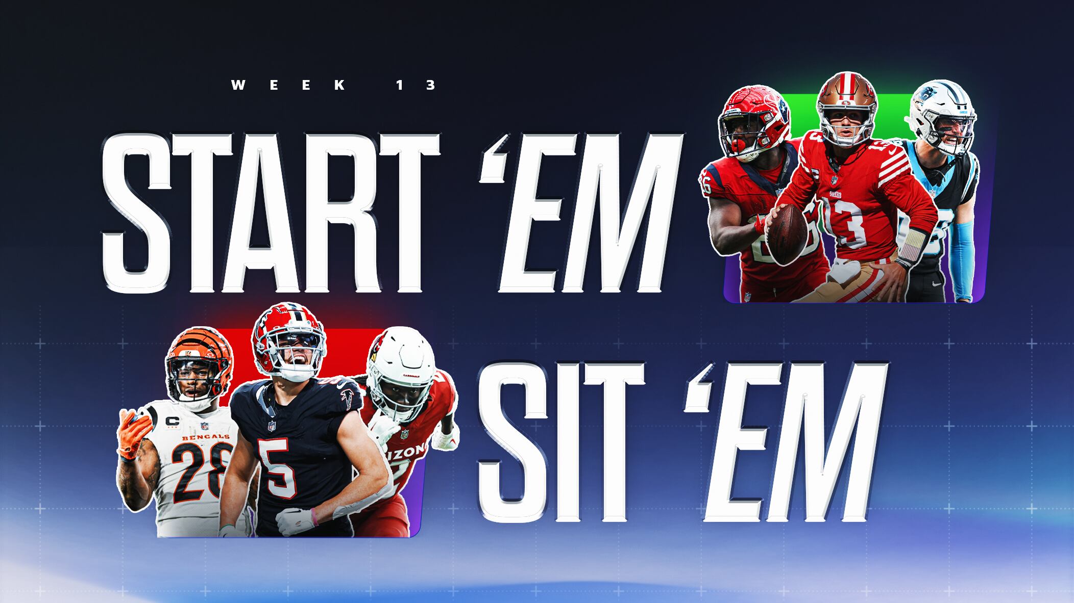 Fantasy football sit-and-start advice should always be relative and league-dependent. Note that some players are targeted for DFS. Good luck with your Week 13 lineups!