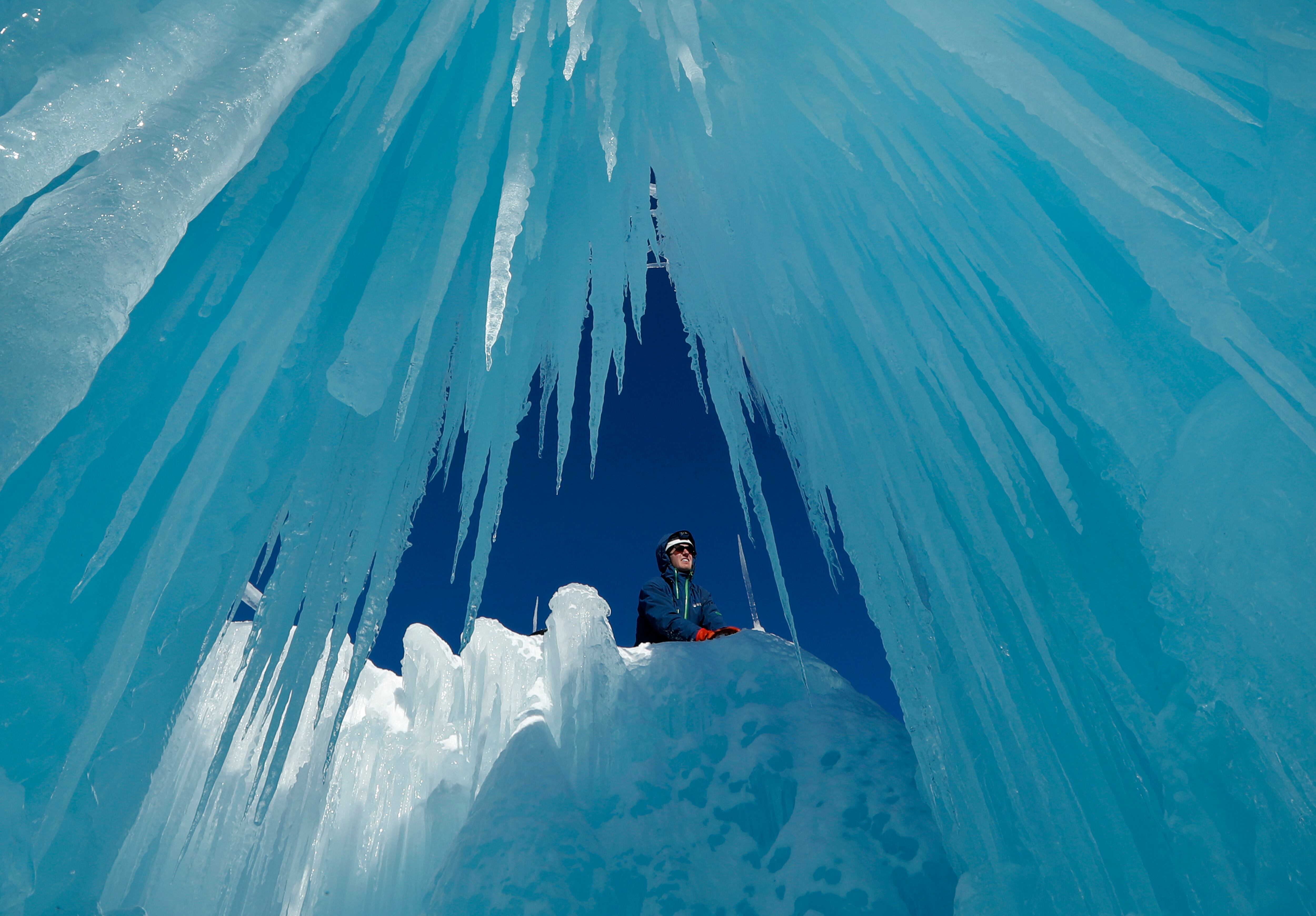 The winter wonderland, one of six in North America, is built from scratch when the cold conditions allow the ice to sprout from the barren ground.