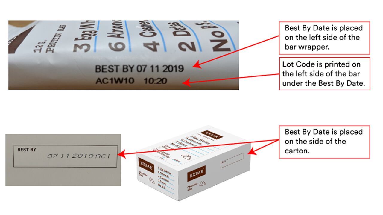 - Chocolate Chip, single bar, UPC 57777 00469, 12-count carton, UPC 57777 00472, 5-count carton, UPC 58030 00845, 4-count carton, UPC 57777 00492, Best by Dates between 3/24/2019 – 5/14/2019, 7/11/2019 – 9/8/2019 and 9/30/2019 – 10/1/2019