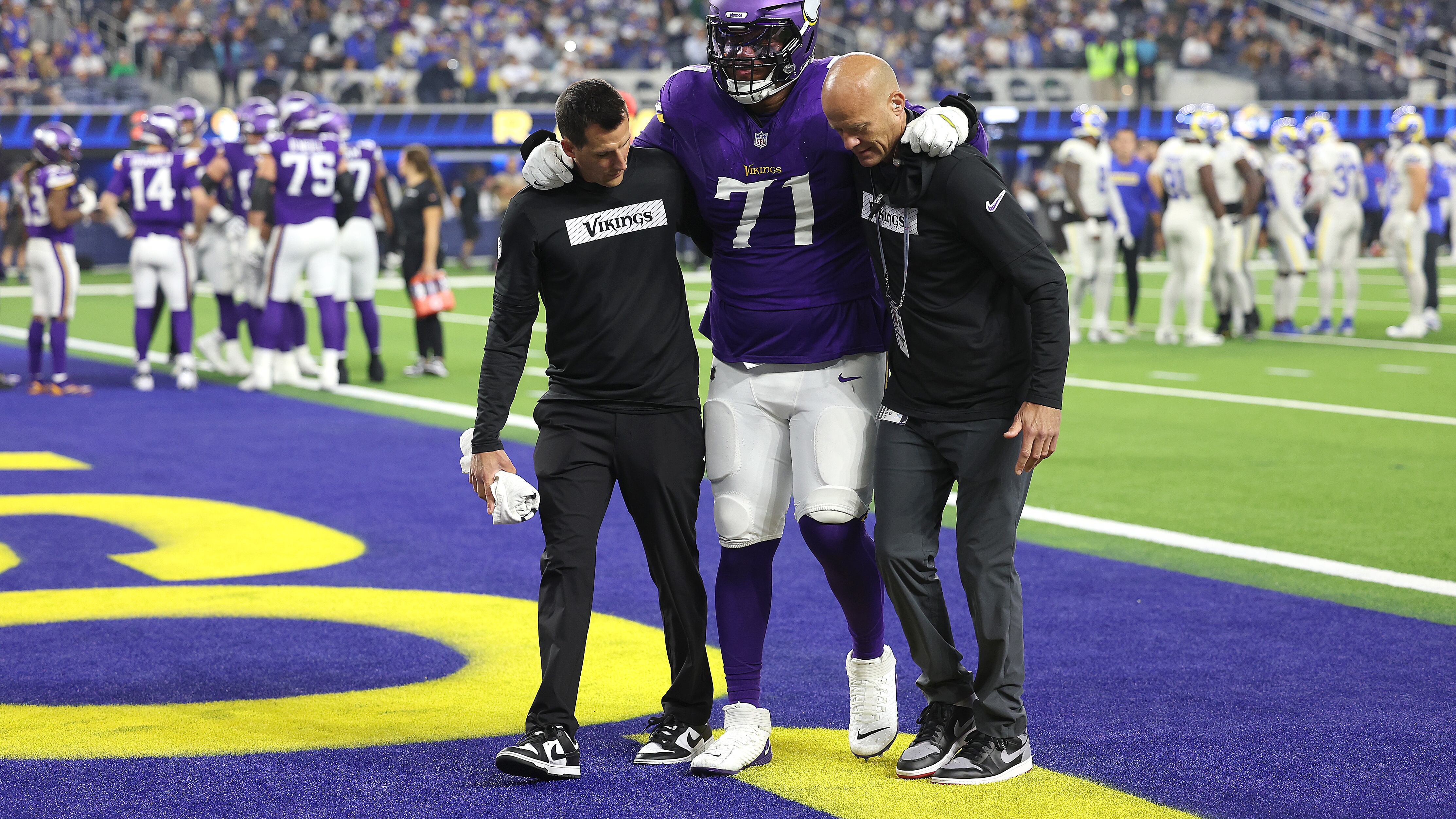 The injury occurred in the third quarter of a 30-20 loss for the Vikings, when Rams safety Jaylen McCollough fell on his lower leg while taking down Vikings running back Aaron Jones from behind. Darrisaw's leg bent awkwardly and he needed to be helped off the field by trainers.