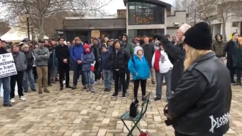 A group of about 100 antiwar protesters have gathered here at Schenley Plaza in Oakland spreading the message of no war or sanctions on Iran @WPXI @WPXIAaronMartin @AFP @NBCNews @CNN @RadioFreeTom @nytimes pic.twitter.com/B0wINAS2ns