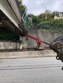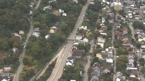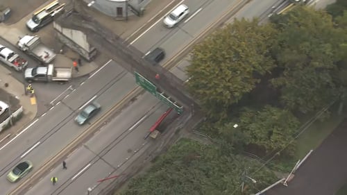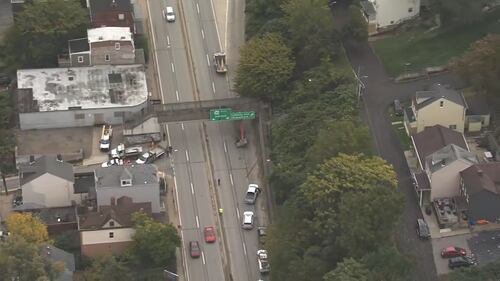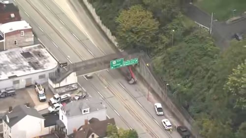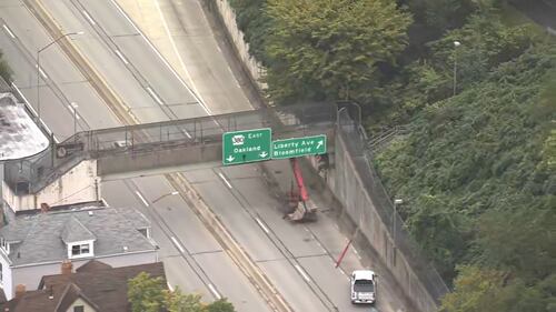 PHOTOS: Bigelow Boulevard closed after crane hits pedestrian overpass