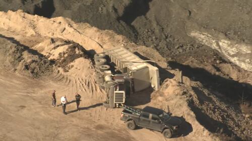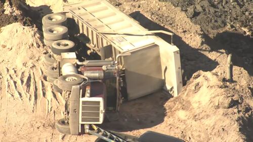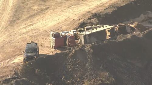 PHOTOS: Dump truck overturns near quarry in West Deer Township