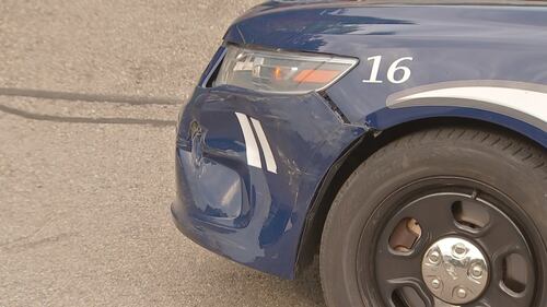 Brentwood Police Department car with minor damage Minorly damaged police car on scene of an officer-involved shooting in Brentwood.