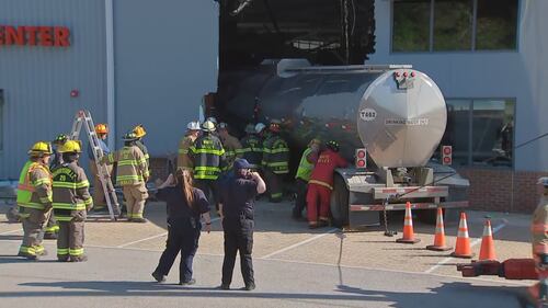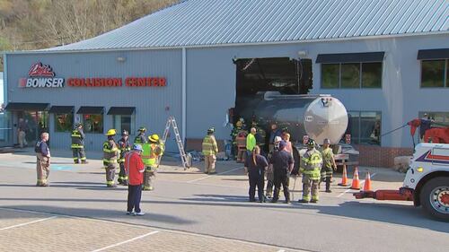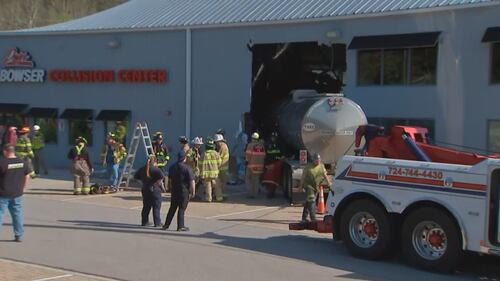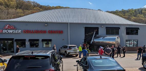 PHOTOS: Tanker truck slams into car collision center in Murrysville