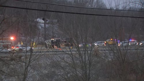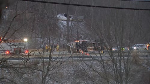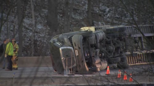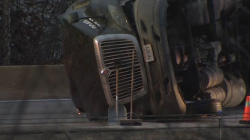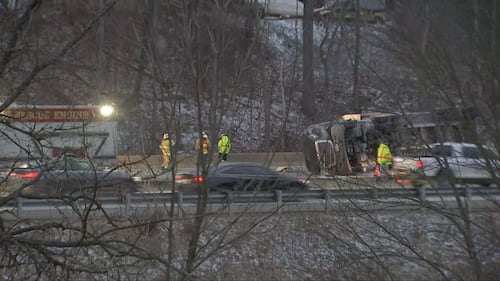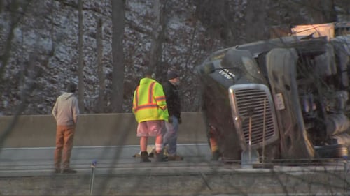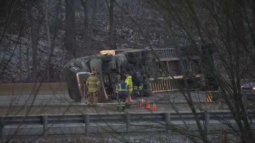 PHOTOS: Tractor-trailer rolls onto its side on I-279 in Allegheny County