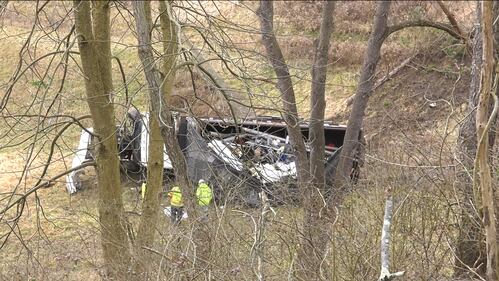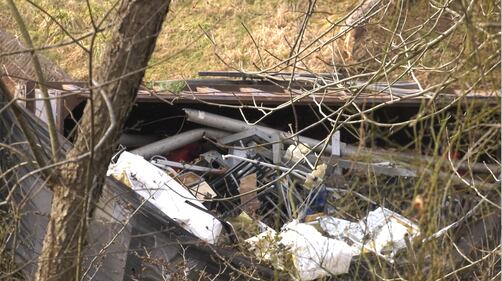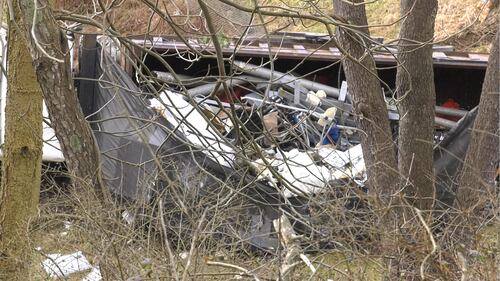 PHOTOS: Truck carrying scrap and tin seriously damaged after crashing over hillside