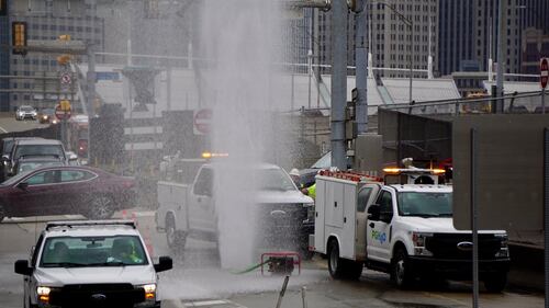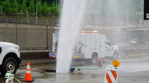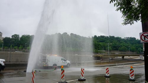 PHOTOS: Water main break sends water shooting into air near I-279 in Pittsburgh