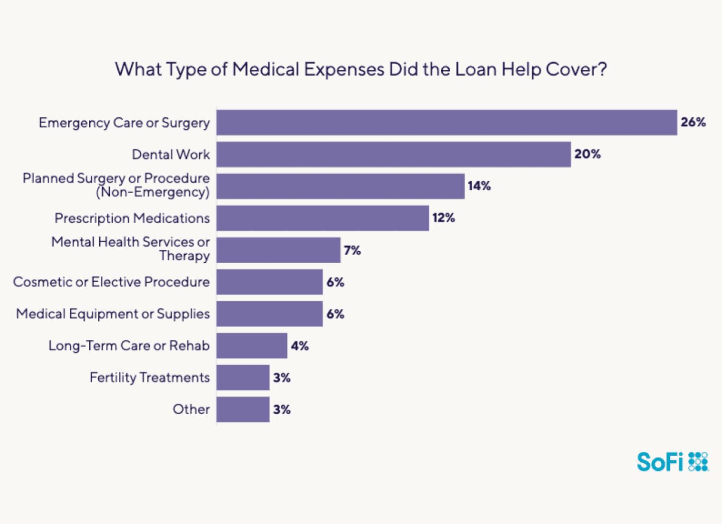 An additional 4.1% of all borrowers said they were paying medical bills as part of debt consolidation. Also, of the 17% who used their loans for emergency expenses, about two dozen people (2.6% of all respondents) reported that the emergency involved medical or dental costs.