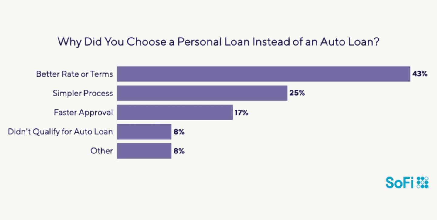 Indeed, among the survey respondents who said they used personal loans for car expenses, 43% said they bypassed auto loans because a personal loan came with better terms and lower rates. One in four felt it was simpler to apply for the personal loan than an auto loan.