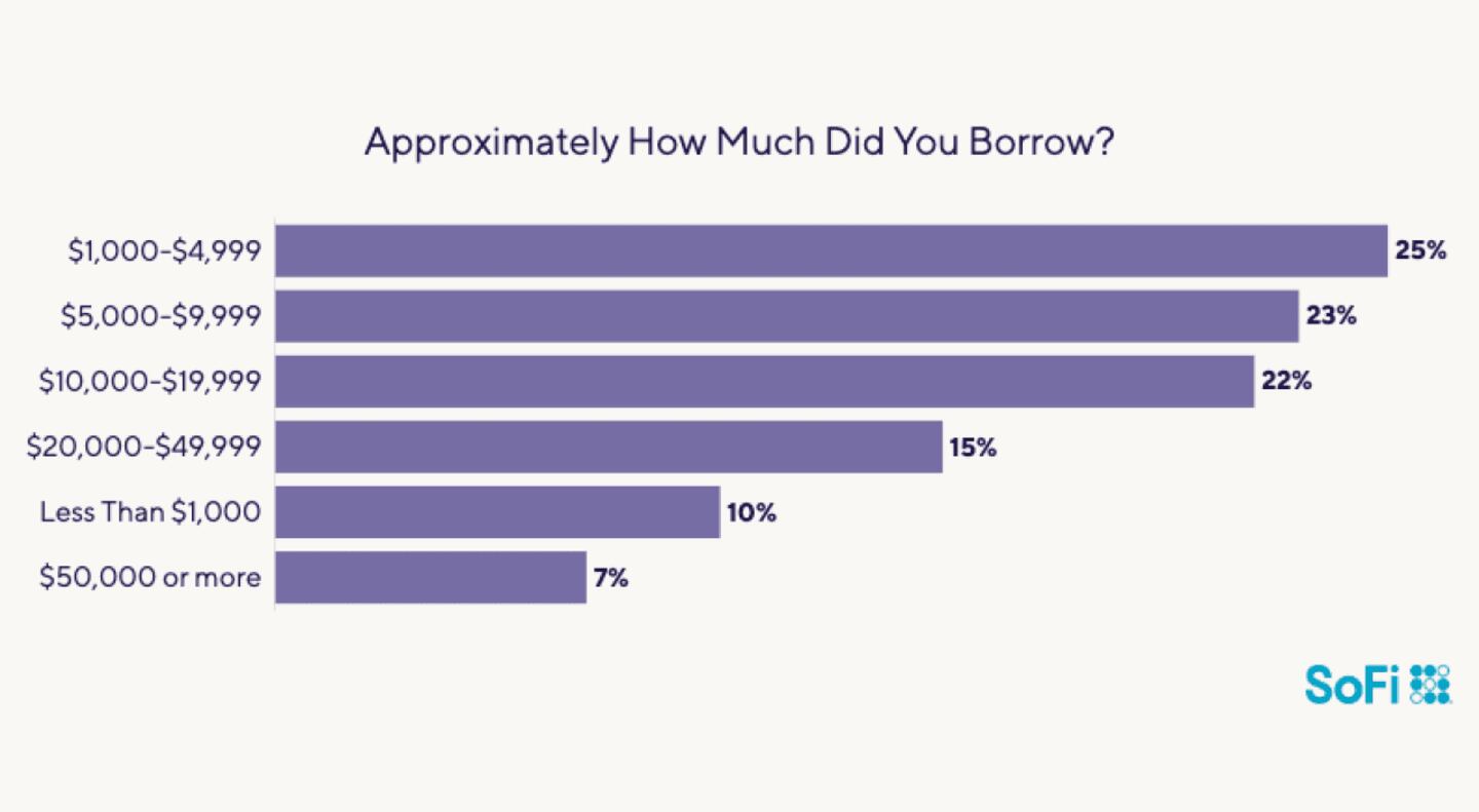 Here, take a closer look at how much people borrowed, for how long, and at what interest rate, along with other key findings from the SoFi Real Borrowers, Real Reasons survey.
