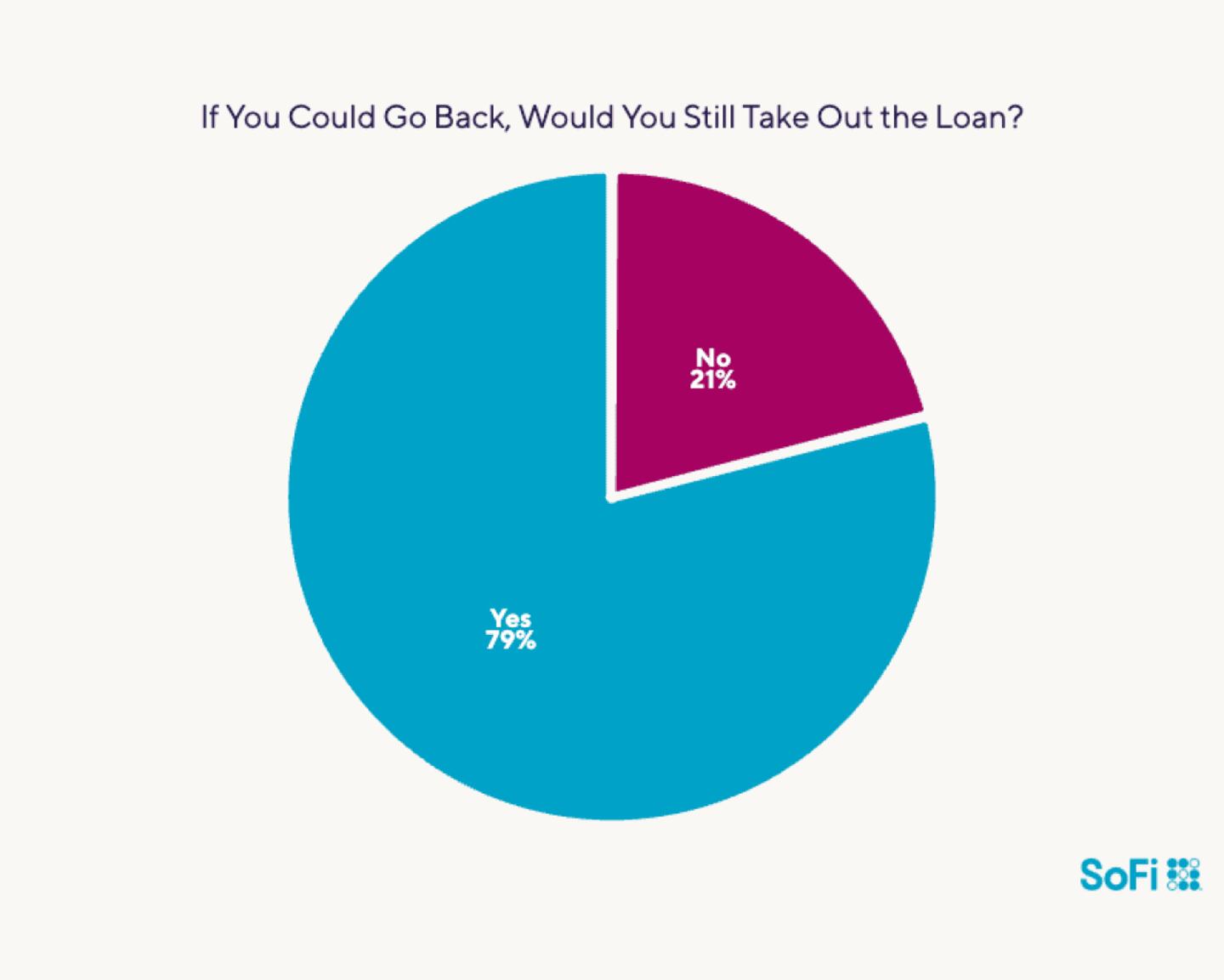 Almost 90% of people say they have been satisfied with their loan. That said, roughly 11% of borrowers say using a loan for their chosen purpose was a mistake, with 9% saying they “somewhat” regret the loan. And indeed, when asked to consider whether they’d make the same choice again, 21% of all respondents answered “no.”