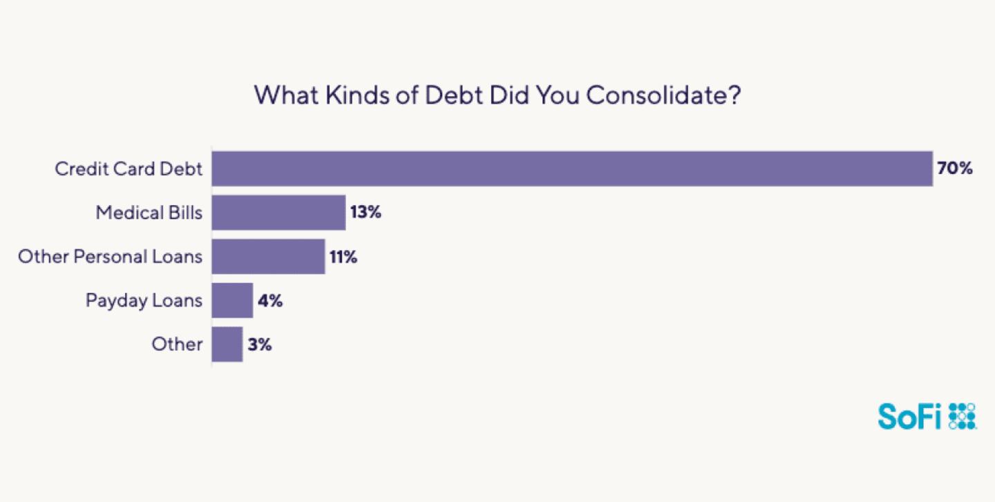 Refinancing existing debt is a classic strategy for shrinking your monthly bills, and one-quarter of survey respondents cited debt consolidation as their loan’s primary purpose.