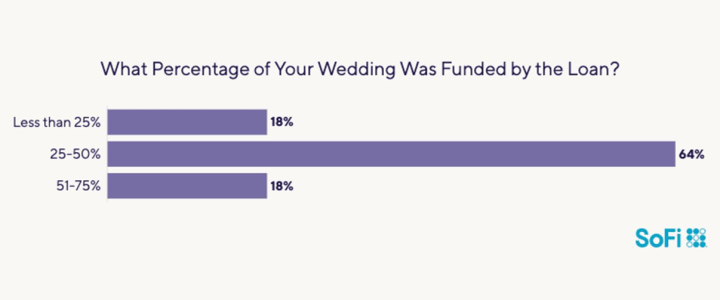 The large majority (82%) of those who took out wedding loans borrowed up to half the total cost of their nuptials. For almost two-thirds of all wedding borrowers (64%), the loans paid 25% to 50% of the expenses.