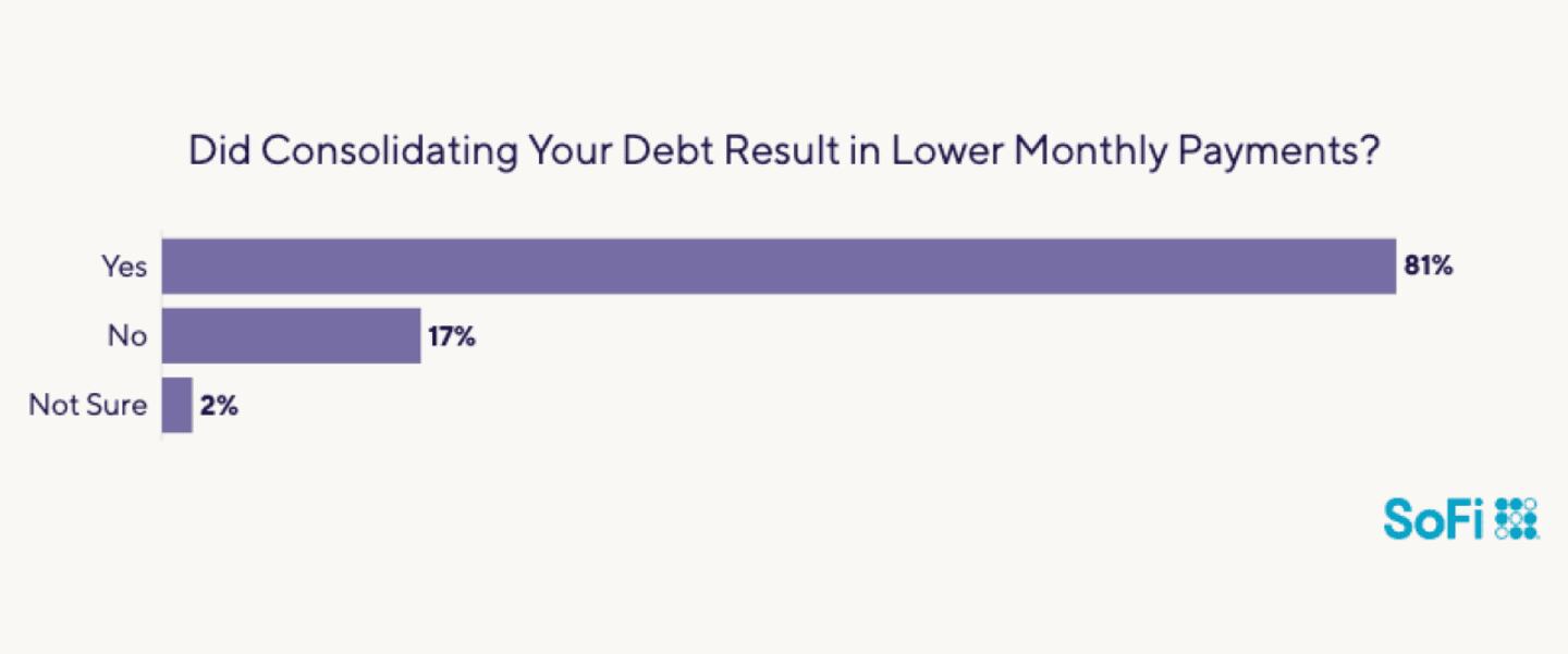 By securing a debt consolidation loan, 81% of people reported that the move lowered their monthly payments.