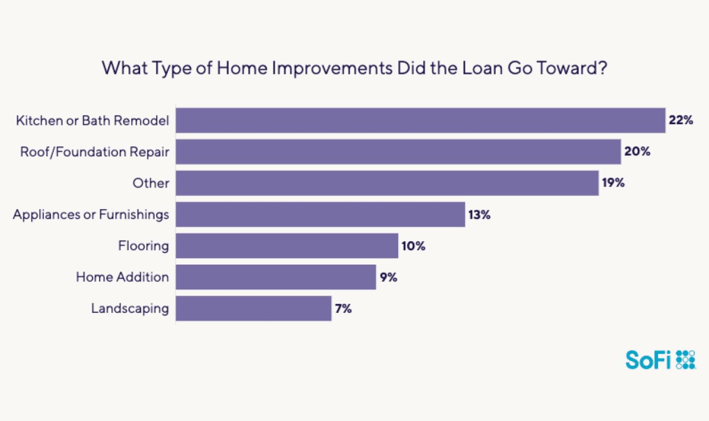 One in five people said they borrowed money for home improvement or renovations. These respondents tended to take on practical projects, such as remodeling the kitchen or bath (22%) or repairing their property’s roof or foundation (20%).
