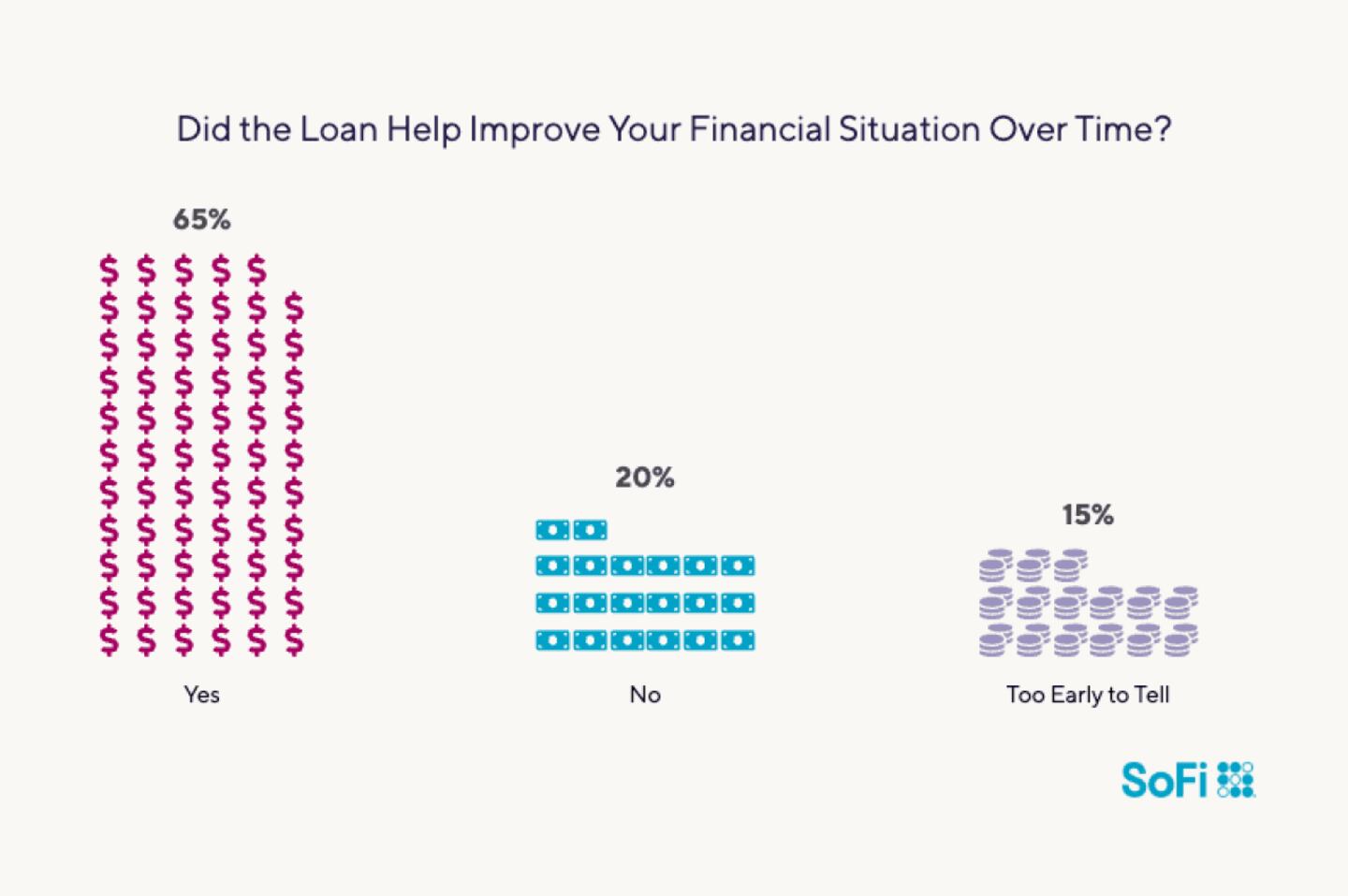 However, 1 in 5 respondents felt their finances did not improve after the loan and, in retrospect, regret using a loan for the purpose they chose.
